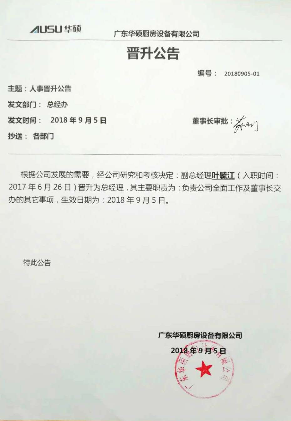 华硕员工离职公告通知