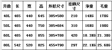 1、额定容量:( 40、50、60、80)L